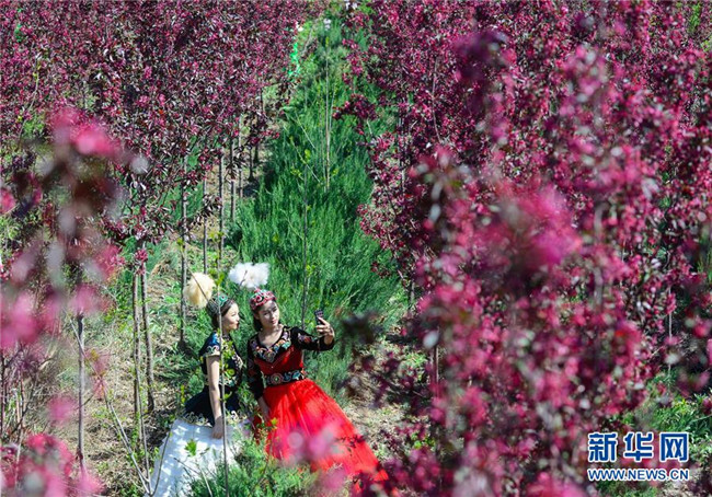當日,正在新疆昌吉回族自治州呼圖壁縣舉行的第四屆海棠花季鄉(xiāng)村文化旅游節(jié)吸引了眾多游客。目前,新疆天山北麓海棠花相繼綻放,進入最佳觀賞期。 新華社發(fā)(丁磊攝)