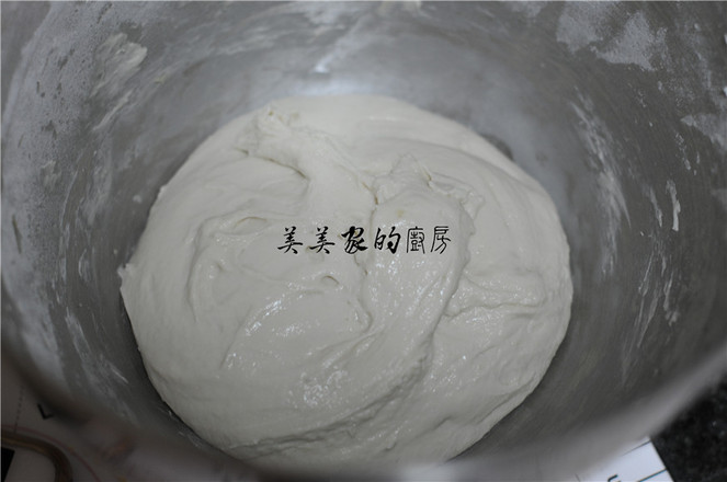3.用筷子和成細(xì)膩、濕潤的面團(tuán)。蓋上保鮮膜,將面團(tuán)醒發(fā)20分鐘。