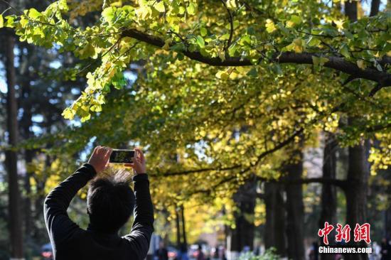 大學(xué)校園內(nèi)銀杏樹葉變黃,吸引民眾前來(lái)拍照游覽。中新社記者 任東 攝