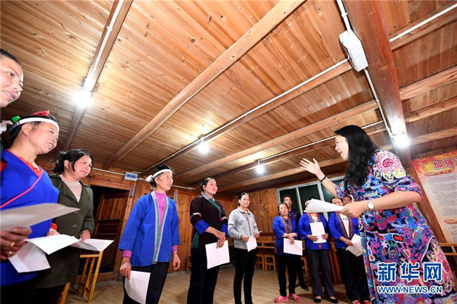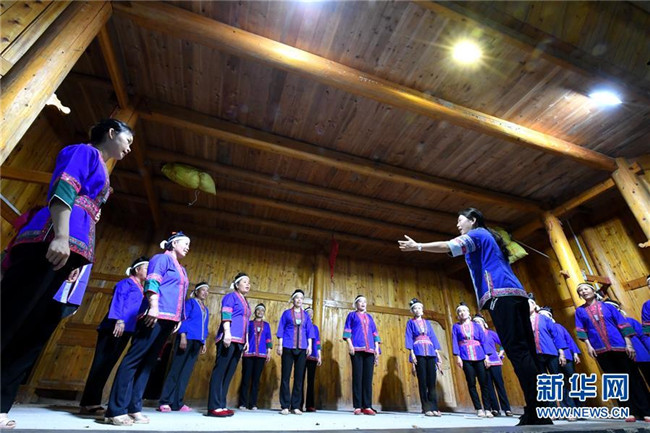 5月27日晚,在廣西柳州市三江侗族自治縣良口鄉(xiāng)燕茶村,吳純娟與村民在戲臺(tái)上排練侗族大歌。 今年42歲的吳純娟是廣西柳州市三江侗族自治縣文化館的一名文藝輔導(dǎo)員。她從小喜歡唱歌,工作后接觸并喜歡上侗族大歌,2005年起專門拜師學(xué)唱侗族大歌。如今,侗族大歌成為她主要輔導(dǎo)和傳承的音樂(lè)之一。今年3月中旬,她成為三江縣良口鄉(xiāng)燕茶村一名駐村工作隊(duì)員,侗族大歌是她扶貧的法寶。 燕茶村位于侗鄉(xiāng)大山深處的山腰上,村民們雖然熱愛(ài)歌舞,但卻無(wú)人會(huì)唱侗族大歌。吳純娟進(jìn)村后,當(dāng)即在村里開設(shè)了侗族大歌免費(fèi)培訓(xùn)班,利用晚上及其他工作之余的時(shí)間教村民唱侗族大歌,受到村民歡迎。如今,燕茶村專門成立“侗族大歌文藝隊(duì)”,隊(duì)員從一開始的20人迅速發(fā)展到33人。村部會(huì)議室、村里的戲臺(tái)、還有山上的千畝茶園……他們的歌聲幾乎傳遍了燕茶村的每個(gè)角落。 “這段時(shí)間,吳老師還利用休息時(shí)間教學(xué)校老師和學(xué)生唱侗族大歌。”燕茶村燕子小學(xué)老師楊雪連說(shuō),學(xué)校里從來(lái)沒(méi)有音樂(lè)老師,吳老師在學(xué)校里開班,師生們學(xué)習(xí)熱情也非常高。 吳純娟說(shuō):“每首侗族大歌歌唱的都是自然、勞動(dòng)和愛(ài)情之美,傳承民族文化的同時(shí),我更希望激發(fā)貧困山區(qū)群眾對(duì)美好生活的向往,提高自信,共同脫貧致富。”據(jù)了解,侗族大歌是侗族地區(qū)一種多聲部、無(wú)指揮、無(wú)伴奏、自然和聲的原生態(tài)音樂(lè)。2005年,侗族大歌被列入我國(guó)第一批非物質(zhì)文化遺產(chǎn)名錄,2009年被列入世界人類非物質(zhì)文化遺產(chǎn)代表作名錄。