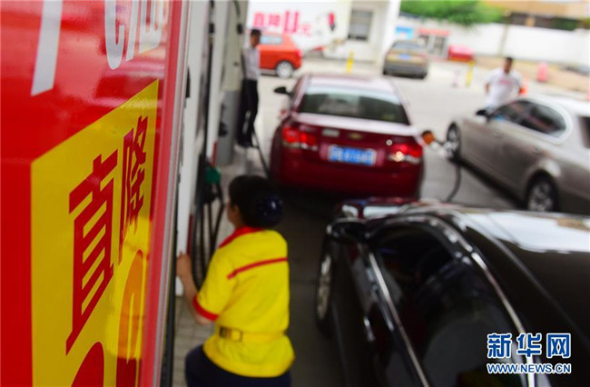 6月25日,江蘇省無(wú)錫市一加油站工作人員在給車輛加油。新華社發(fā)(還月亮 攝)