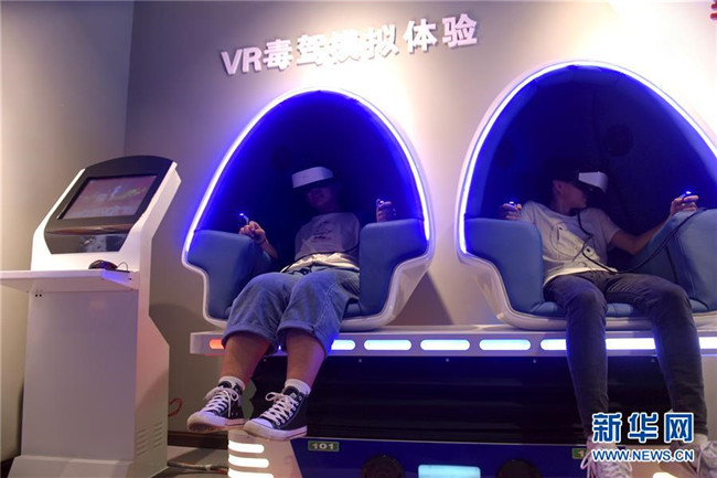 6月26日,在湖北省宣恩縣未成年人法治教育和禁毒警示教育基地,學(xué)生通過虛擬現(xiàn)實設(shè)備,了解吸毒駕駛的危害。新華社發(fā)(王俊攝)