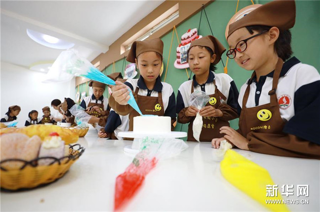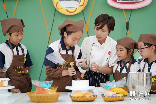 6月26日,內丘縣實驗小學學生在烘焙課堂制作糕點。 新華社記者 朱旭東 攝