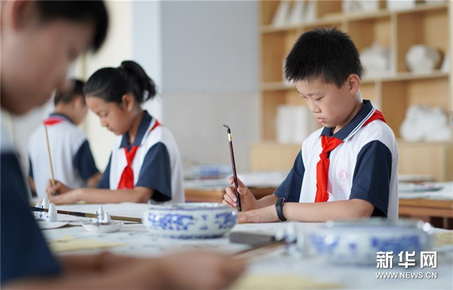6月26日,內丘縣實驗小學學生在參加書法特色課程。 新華社記者 朱旭東 攝
