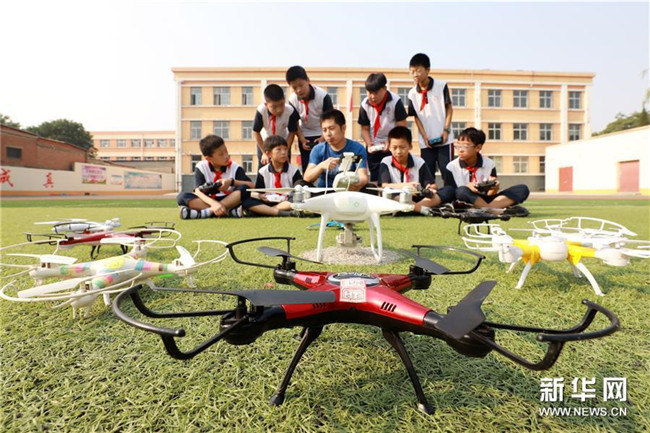 6月26日,內丘縣實驗小學學生在參加無人機特色課程。新華社記者 朱旭東 攝