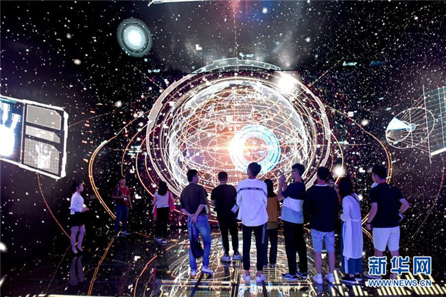 7月9日,大學(xué)生走進(jìn)安徽淮南大數(shù)據(jù)展示中心,通過虛擬現(xiàn)實(shí)設(shè)備,體驗(yàn)現(xiàn)代化井下煤礦開采場(chǎng)景。新華社發(fā)(陳彬攝)