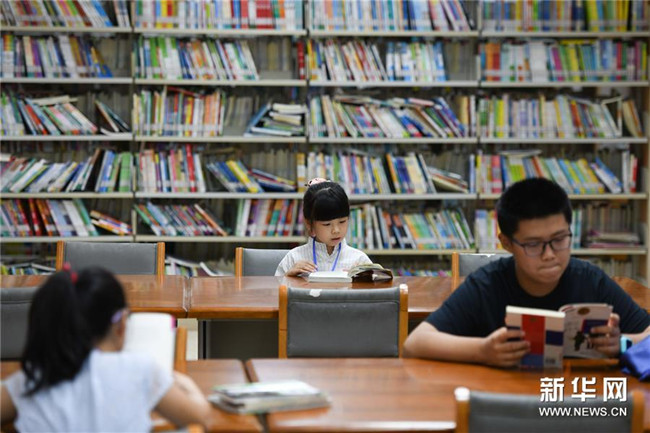 7月20日,孩子們在安徽省圖書館看書。新華社記者 張端 攝