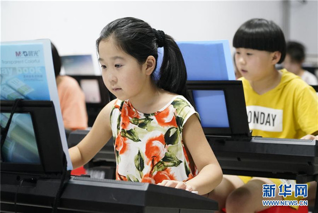 7月30日,學(xué)生在河北省涉縣青少年活動中心學(xué)習(xí)電子琴。