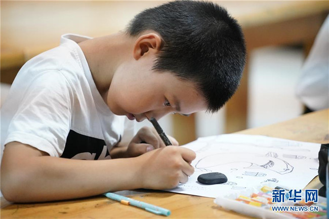 7月30日,學(xué)生在河北省涉縣青少年活動中心畫畫。