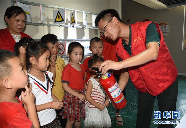當(dāng)日,山東省汶上縣劉樓鎮(zhèn)舉行兒童安全教育活動(dòng),組織小朋友到安全教育體驗(yàn)基地學(xué)習(xí),加強(qiáng)安全意識,平安度過暑假。 新華社記者 任鵬飛 攝