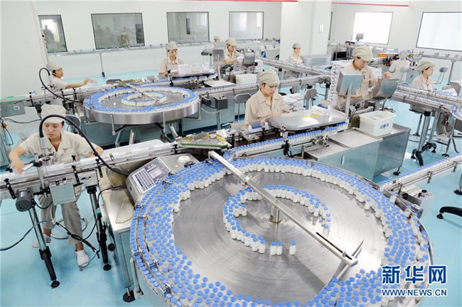 位于沈陽的東北制藥集團的員工在生產(chǎn)線上作業(yè)(資料照片)。新華社發(fā)(東北制藥供圖)