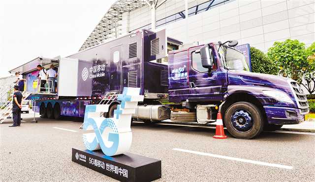 8月14日,在重慶國(guó)際博覽中心,重慶移動(dòng)“5G巡洋艦”??吭诖?。這是全市首輛大型5G應(yīng)用開放體驗(yàn)展示車,市民可零距離感受5G在教育、旅游、工業(yè)、娛樂(lè)領(lǐng)域的廣泛應(yīng)用。