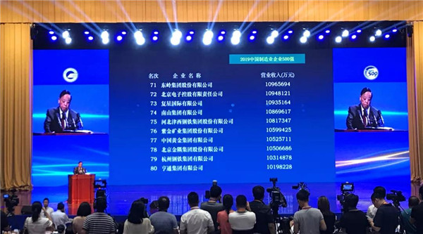 9月1日,2019中國企業(yè)500強發(fā)布,東嶺集團位居2019中國企業(yè)500強第172位!位居2019中國制造業(yè)企業(yè)500強第71位!這也是東嶺集團連續(xù)16年實力上榜。