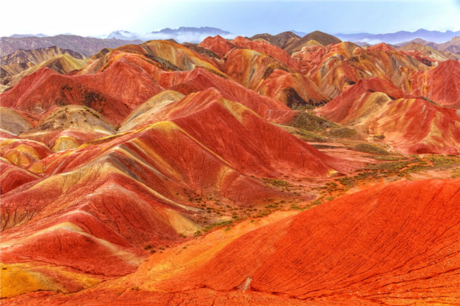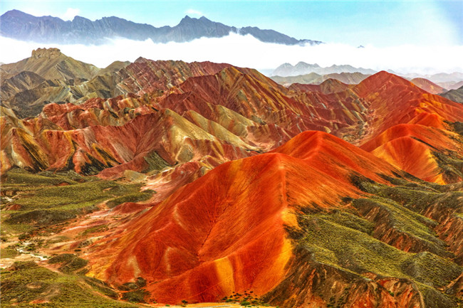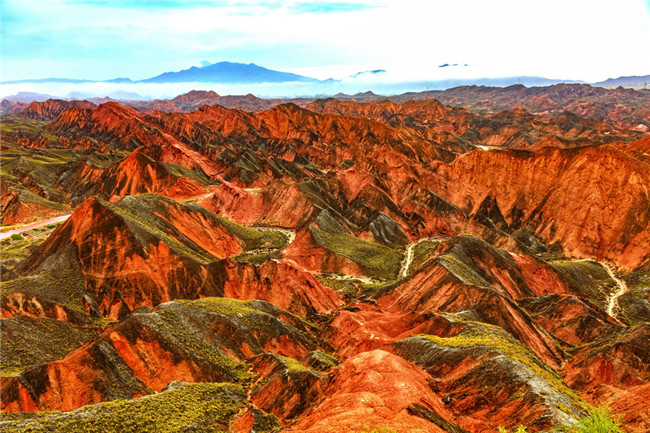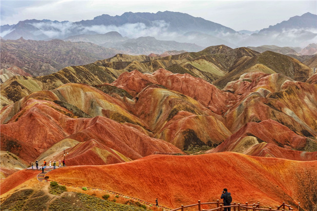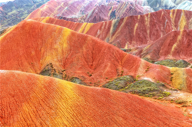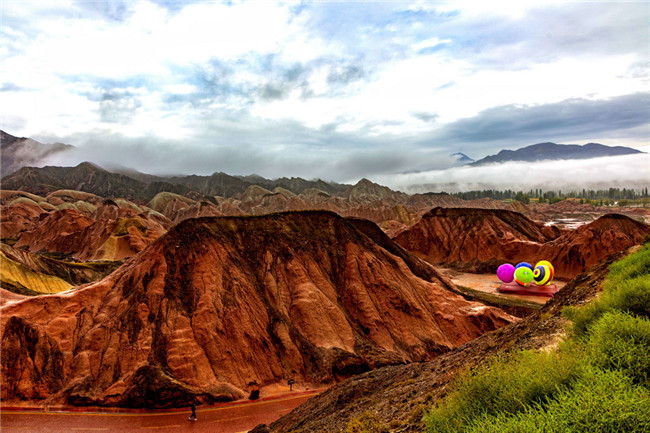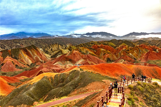9月9日,甘肅張掖七彩丹霞旅游景區(qū)。一場(chǎng)小雨剛剛飄過(guò),整個(gè)景區(qū)如同燃燒了萬(wàn)年的火焰,更加艷麗、熱烈而磅礴。位于祁連山北麓臨澤、肅南縣境內(nèi),距張掖市區(qū)30公里、臨澤城區(qū)20公里,分布面積約50平方公里的七彩丹霞景區(qū),是中國(guó)北方干旱地區(qū)發(fā)育最典型的丹霞地貌及國(guó)內(nèi)唯一的丹霞地貌與彩色丘陵景觀復(fù)合區(qū)。先后被評(píng)為“中國(guó)最美的七大丹霞”“中國(guó)最美的六處奇異地貌”“世界十大神奇地理奇觀”和全球最刻骨銘心的22處風(fēng)景之一,現(xiàn)為國(guó)家地質(zhì)公園、國(guó)家4A級(jí)旅游景區(qū)和省級(jí)風(fēng)景名勝區(qū)。