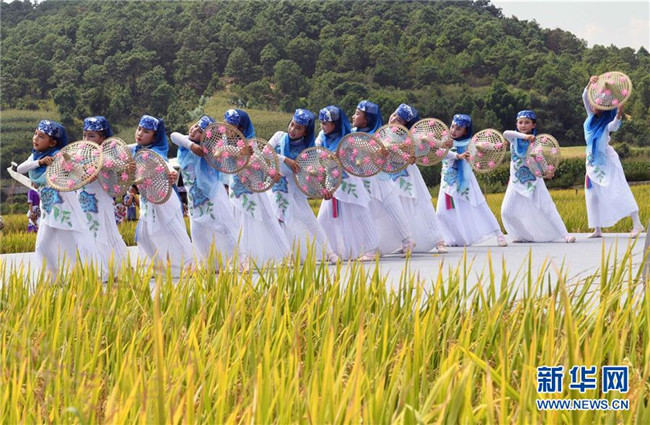 金秋時節(jié),云南省尋甸回族彝族自治縣在七星鎮(zhèn)魯古村舉行慶祝豐收活動。 新華社記者 楊宗友 攝