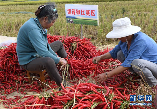 9月15日,云南尋甸回族彝族自治縣七星鎮(zhèn)魯古村的農婦在參與編辣椒比賽。