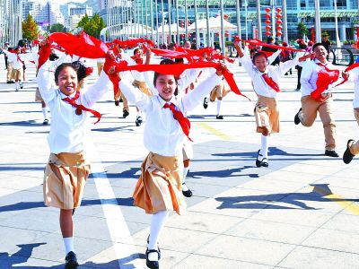 原標(biāo)題:圖片新聞:飛揚紅領(lǐng)巾獻(xiàn)禮新時代