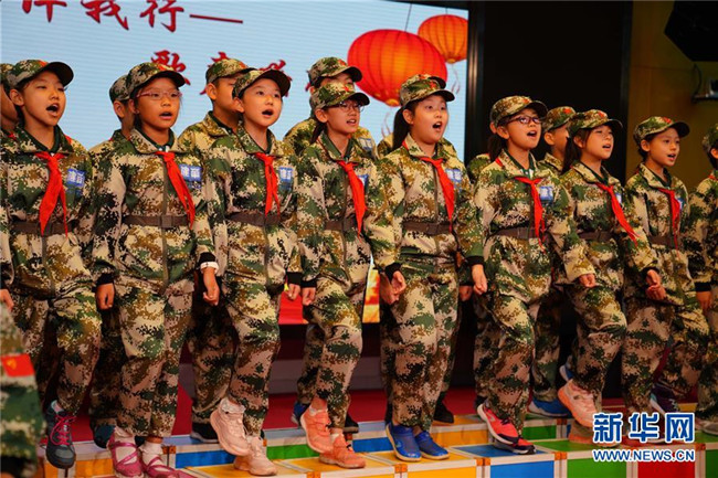 當(dāng)日,北京市建華實(shí)驗(yàn)學(xué)校小學(xué)部舉行“意志伴我行——歌聲嘹亮”紅色歌曲大合唱活動(dòng)。師生們?cè)诟杪曋薪邮芰艘粓?chǎng)愛國(guó)主義教育。 新華社記者 吳建路 攝