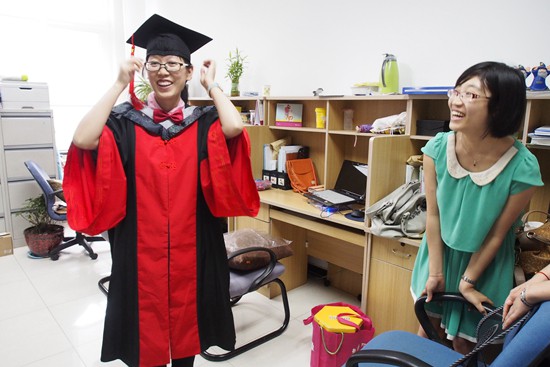 2013年6月,北京市海淀區(qū)中國科學院植物研究所,范明珠(左)經(jīng)過20年寒窗苦讀獲得博士學位。