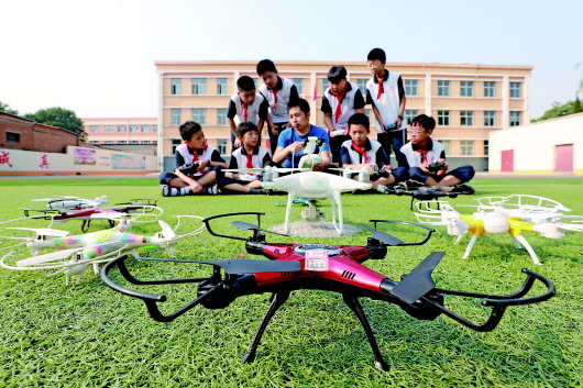 6月26日,河北省內(nèi)丘縣實驗小學學生在參加無人機特色課程。近年來,該校推進素質(zhì)教育,讓學生走出教室,參與到內(nèi)容豐富、形式多樣的特色教育活動中。新華社記者 朱旭東 攝