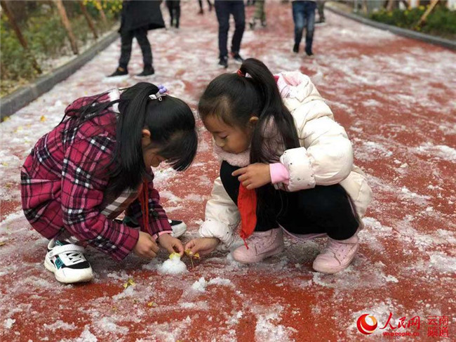 今日早晨,大理多地出現(xiàn)降雨過程,并伴隨下起了冰雹,這讓大理市少藝校的孩子們興奮不已。攝影:王銀環(huán)