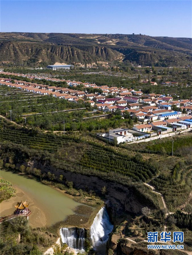 流經(jīng)寧夏固原市彭陽縣城陽鄉(xiāng)的茹河,因地殼變化和河床運(yùn)動(dòng)形成旱塬上的瀑布,當(dāng)?shù)匾源税l(fā)展鄉(xiāng)村旅游(10月12日無人機(jī)拍攝)。 新華社記者 馮開華 攝