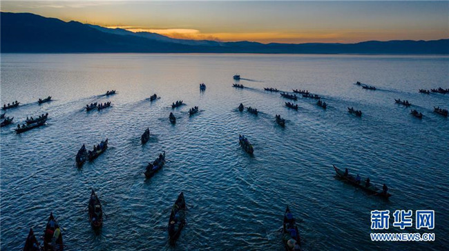 當(dāng)日,位于云南省玉溪市江川區(qū)的星云湖迎來一年一度的開湖捕魚季,600余艘漁船駛?cè)胄窃坪稉啤?星云湖是云南省九大高原湖泊之一,本次開湖捕魚時(shí)間將從2019年12月25日持續(xù)至2020年1月23日。 新華社記者 胡超 攝