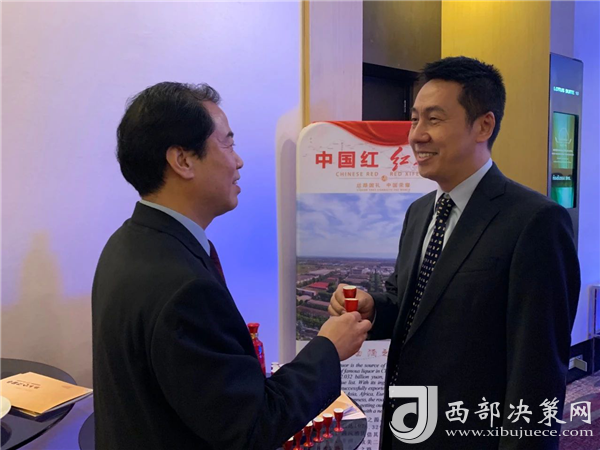 陜西西鳳酒營銷管理公司海外市場負(fù)責(zé)人閆紅斌代表企業(yè)向泰國國務(wù)院前副總理、泰中友好協(xié)會會長功·塔帕郎西贈送紅西鳳酒