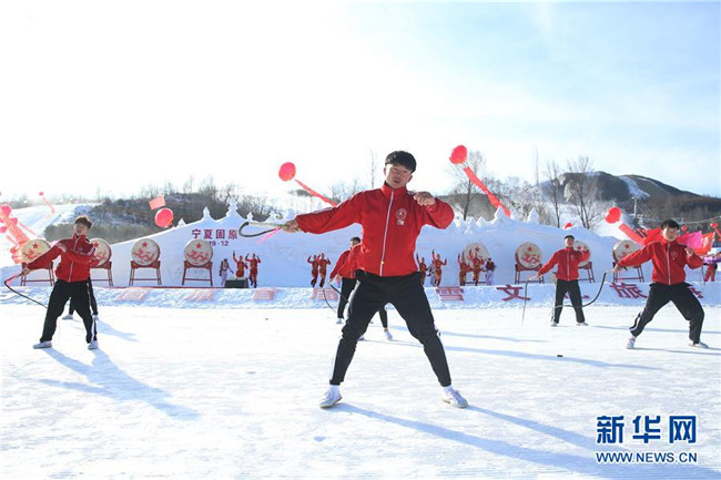 12月26日,表演者在啟動儀式上表演。當日,寧夏固原首屆冰雪文化旅游節(jié)在涇源縣婭豪國際滑雪場開幕。本屆冰雪文化旅游節(jié)以“相約六盤山·歡樂冬季游”為主題,將冰雪資源、文化旅游和體育賽事相結(jié)合,吸引游客參觀游玩。新華社記者賈浩成攝