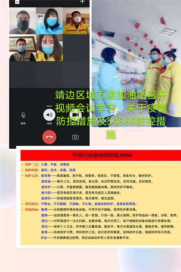 各位站經理發(fā)言表態(tài):一是會盡責履職,堅持24小時值班值守。同時會監(jiān)督當班人員佩戴口罩,做好自身防護措施。堅持早中晚對員工進行體溫測量并建立臺賬記錄,二是積極宣傳新型冠狀病毒肺炎的危害性以及可控性,通過工作交流群、微信朋友圈、站務會等組織學習《加油站如何防范新型冠狀病毒》,提高加油站員工自我防控意識和能力,讓站員工不聽謠、信謠、傳謠,安心做好加油服務工作。三是定時對加油站進行現場消毒,加大消毒通風和環(huán)境衛(wèi)生的綜合整治力度。四是會議結束后,將應用信息系統,快速將會議精神傳達給各位員工,做到人人皆知,口口相傳,織牢疫情防控安全網。