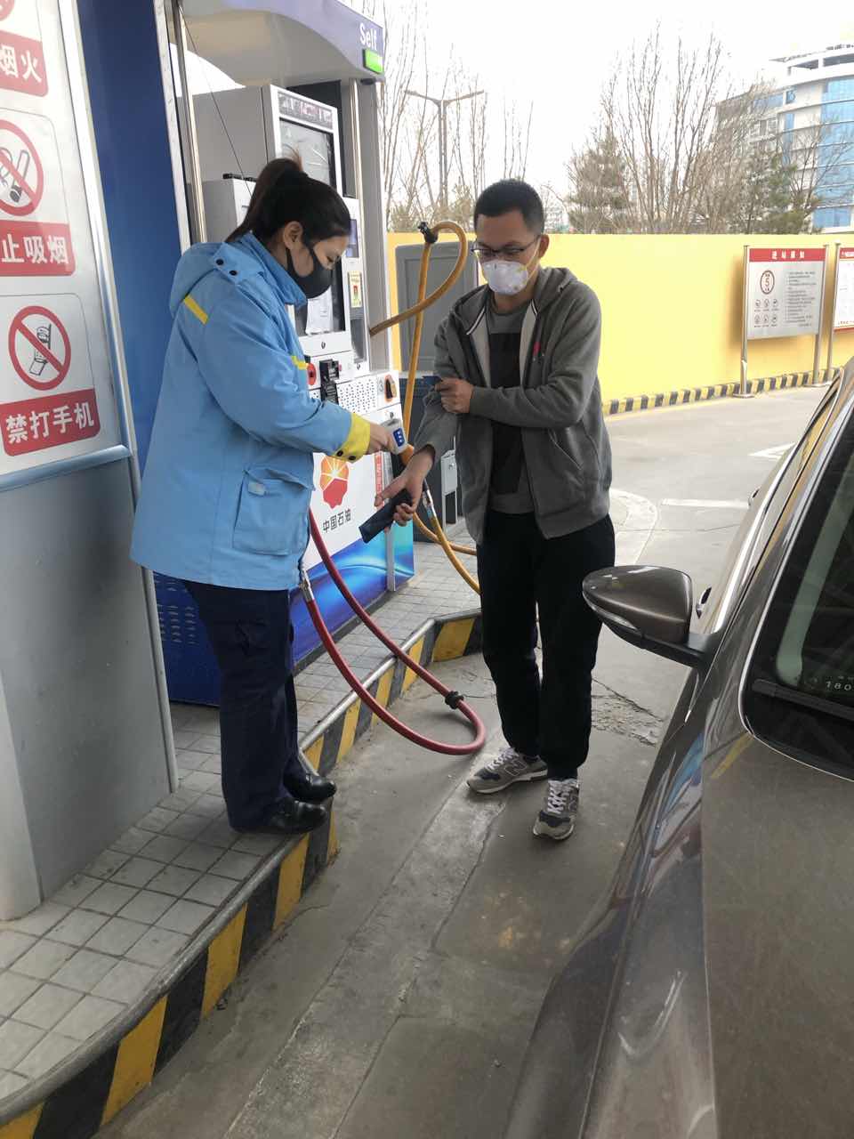 區(qū)域所轄加油站,站站有黨員,為保障員工安全健康,各黨員發(fā)揮模范先鋒崗作用,帶動員工一起抗擊疫情。在收銀臺設置一米安全警戒線;加強防控物資管控,保證防護口罩、消毒水、手套等物品充足;班組優(yōu)化,確保正常營業(yè);尋找地方政府辦理疫情期間車輛通行證,保證油品供應;組織員工學習“34566”疫情防護措施,提升員工自我防護意識;制定應急預案,建立站、組、人三級防控工作責任網格化體系,讓全體員工深刻認識到新型冠狀病毒疫情防控工作的重要性和緊迫性,并及時通過各種渠道告知顧客。