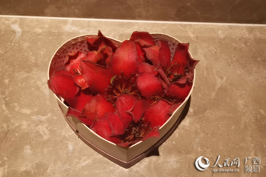 到了酒店,我收到了一份特殊的禮物,是兒子親手為我裝飾的木棉花花籃。晚上看電視報(bào)道時(shí),我才知道,原來家人為了見我一面,提前一個(gè)小時(shí)就到酒店外等候了。在等待的時(shí)候,兒子就去撿了很多木棉花花瓣,擺成“心”的形狀。
