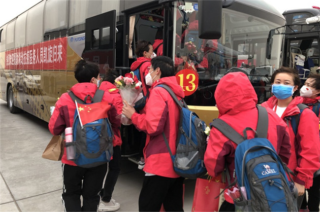 今天下午,載有寧夏第五批、第六批援湖北醫(yī)療隊(duì)隊(duì)員的包機(jī)降落在銀川河?xùn)|國(guó)際機(jī)場(chǎng)。今日撤離隊(duì)伍共有323人返回,其中320人乘機(jī)返回,3人駕駛緊急救援車(chē)返回。回寧后,各醫(yī)療隊(duì)醫(yī)務(wù)人員將分別由五市接回,在指定酒店接受14天醫(yī)學(xué)隔離。據(jù)了解,疫情以來(lái),寧夏陸續(xù)派出六批援湖北醫(yī)療隊(duì)隊(duì)員共計(jì)785人,目前仍有8名疾控中心流調(diào)人員繼續(xù)在武漢、潛江支援。