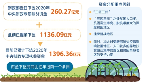 目前已累計下達(dá)2020年中央財政專項扶貧資金1396.36億元——