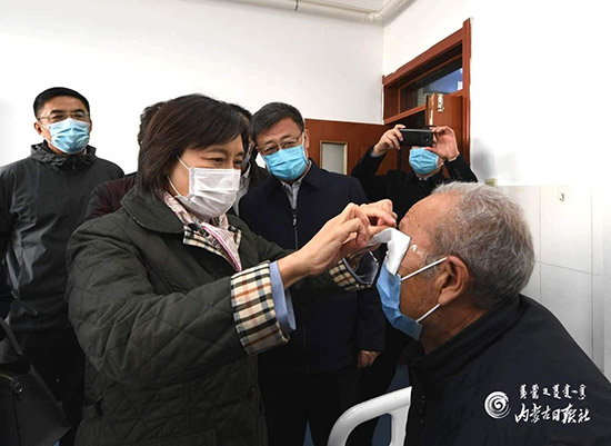 4月8日,2020年全區(qū)“光明行”社會公益活動在通遼市科左中旗啟動。自治區(qū)主席、自治區(qū)紅十字會名譽會長、全區(qū)“光明行”社會公益活動組委會主任委員布小林出席啟動儀式,并為術后白內障患者取下紗布。內蒙古日報社融媒體記者 韓卿立攝