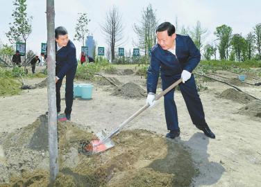 四月八日,四川省委書記彭清華到成都市調(diào)研公園城市建設推進情況。在天府中央公園,彭清華與天府新區(qū)干部群眾一起植樹造林,為公園城市建設再添一抹綠、貢獻一份力。記者 歐陽杰 攝