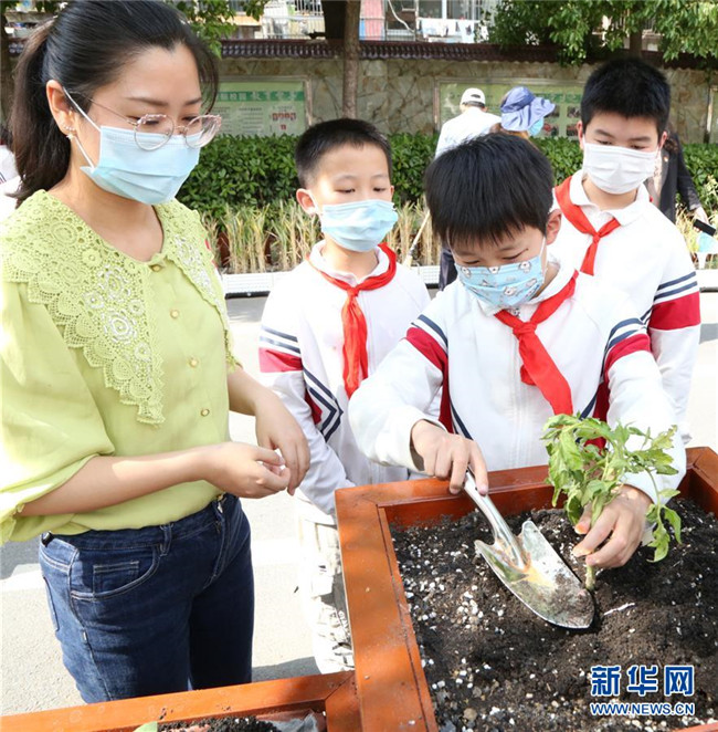 該校啟動(dòng)“我是小小勞動(dòng)者”系列線上和線下主題活動(dòng)月。在線下活動(dòng)中,先期復(fù)學(xué)的學(xué)生們?cè)谳o導(dǎo)老師指導(dǎo)下開展勞動(dòng)實(shí)踐。