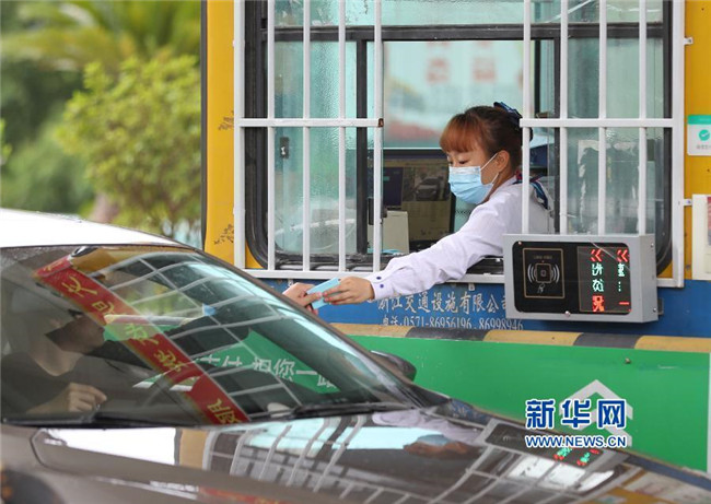5月6日,貴州省銅仁市玉屏侗族自治縣滬昆高速玉屏收費站的收費員在收取過往車輛過路費。 交通運輸部4月28日發(fā)布關(guān)于恢復收費公路收費的公告,經(jīng)國務院同意,自2020年5月6日零時起,經(jīng)依法批準的收費公路恢復收費(含收費橋梁和隧道)。 新華社發(fā)(胡攀學 攝)