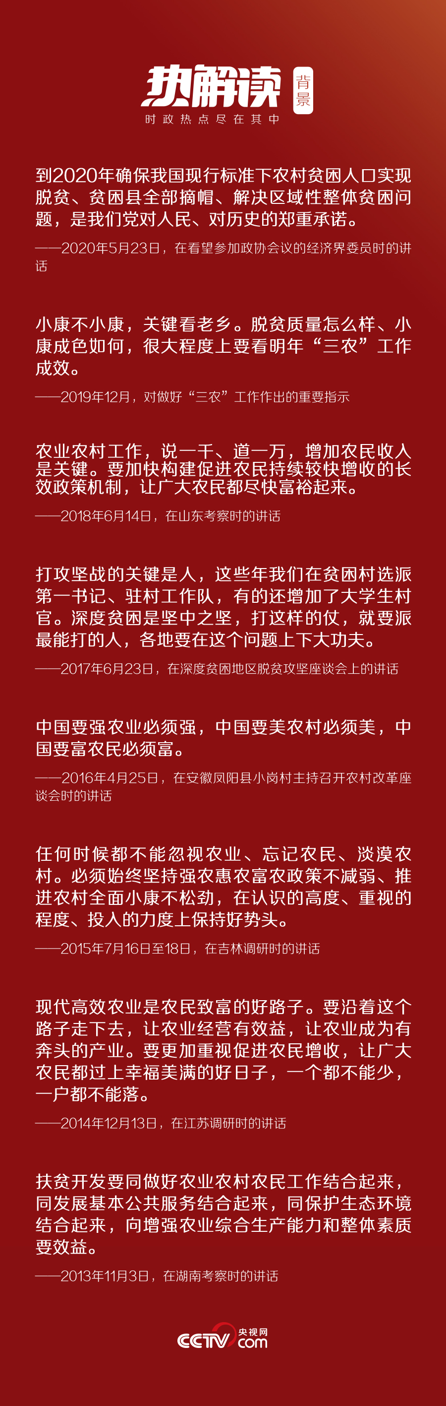 3月6日,在黨的十八大以來(lái)脫貧攻堅(jiān)方面最大規(guī)模的會(huì)議上,習(xí)近平對(duì)脫貧攻堅(jiān)工作再作部署:“這是一場(chǎng)硬仗,越到最后越要緊繃這根弦,不能停頓、不能大意、不能放松。各省區(qū)市都層層簽了軍令狀,承諾了就要兌現(xiàn)。”