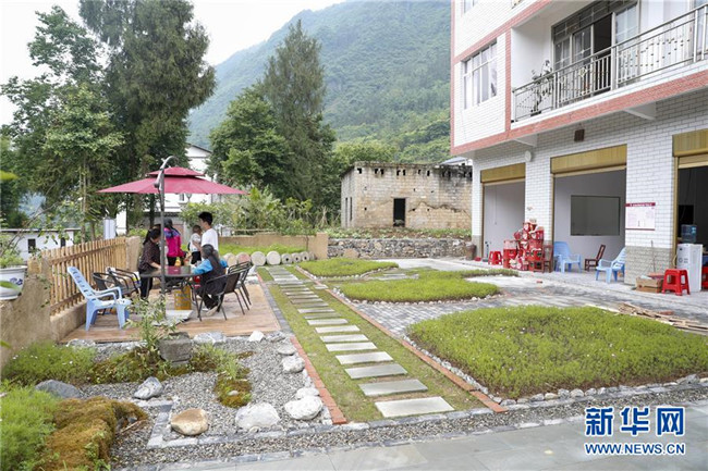 5月28日,在重慶市巫溪縣紅池壩鎮(zhèn)漁沙村,村民在自家門(mén)前的小花園休息。新華社發(fā)(黃偉 攝)