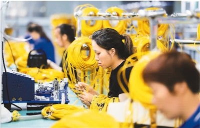 今年以來,安徽省淮北市加快培育戰(zhàn)新產(chǎn)業(yè)鏈,提升戰(zhàn)新產(chǎn)業(yè)整體競爭力,使戰(zhàn)新產(chǎn)業(yè)成為經(jīng)濟增長新引擎。圖為淮北市濉溪經(jīng)濟開發(fā)區(qū)內(nèi)的一家光通信技術(shù)企業(yè)的工人在生產(chǎn)車間加工光通信產(chǎn)品。萬善朝攝(人民視覺)