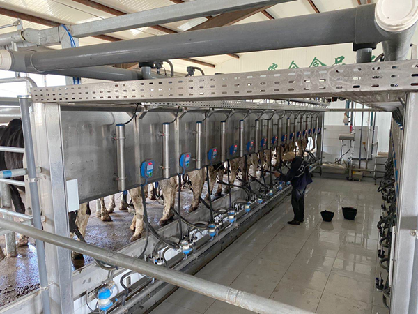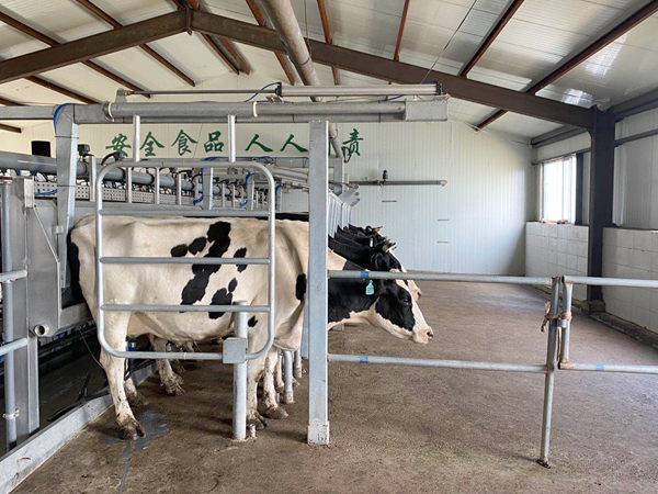 奶牛每天需要擠奶2到3次。牧場的每個(gè)牛舍里,都配有1個(gè)擠奶廳,奶牛吃完飼料,直接就可以到擠奶廳擠奶。