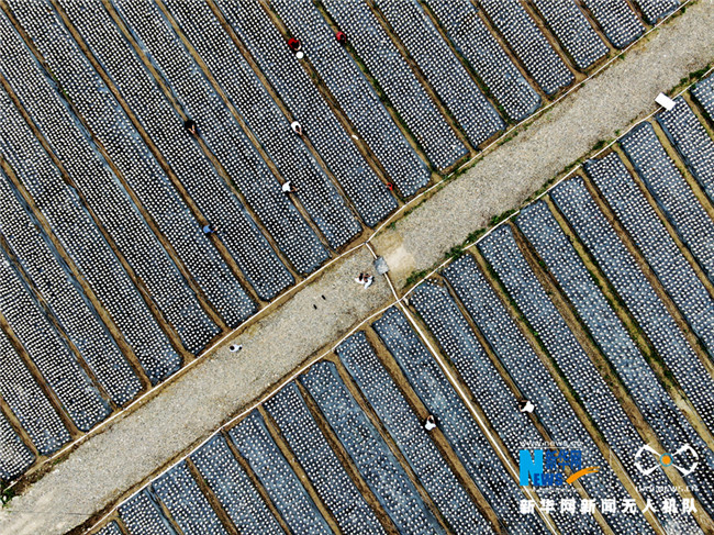 甘肅省宕昌縣好梯鄉(xiāng)地處林緣地帶,氣候溫暖潮濕,非常適宜菌類(lèi)生長(zhǎng)。在好梯鄉(xiāng)麻子溝扶貧產(chǎn)業(yè)園中黑木耳長(zhǎng)勢(shì)喜人,一排排整齊排列的菌棒構(gòu)成一幅美麗畫(huà)卷。目前,第一批耕地種植黑木耳6萬(wàn)袋,年產(chǎn)黑木耳3噸,第二批擬在今年9月份新建鋼架大棚24個(gè),吊袋種植黑木耳21萬(wàn)袋,年產(chǎn)黑木耳10.5萬(wàn)噸。新華網(wǎng)發(fā)(劉輝 攝)