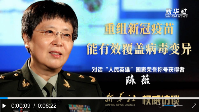 陳薇:我們是一個基因工程疫苗,就是找到最有用那一段基因,把它做成疫苗。從目前的數據分析來看,我們選的這一段基因產生變化的幾率非常低。截至目前,我們的重組新冠疫苗對已經發(fā)生變異的新冠病毒能夠完全覆蓋。