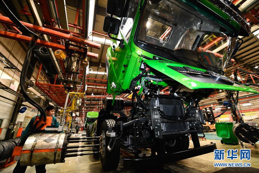 工人在位于濟南市章丘區(qū)的中國重汽集團濟南商用車有限公司整車裝配生產線上作業(yè)(2018年1月25日攝)。新華社記者 郭緒雷 攝