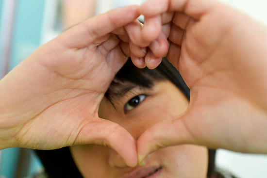 11月9日,貴州省遵義市鳳岡縣特殊教育學(xué)校,一名學(xué)生在教室里上課時對著照相機(jī)做心形手勢。