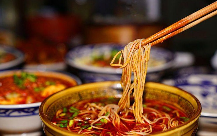 羊肉饸饹又稱蕎面饸饹,是北方面食三絕之一,與蘭州拉面、山西刀削面齊名,制作羊肉饸饹最重要的是羊肉臊子,選上好肥瘦相間的羊肉,切成細丁,小火煸炒,浸出油脂,加入花椒大料,慢火燉制數(shù)小時,又以羊油和食用油燒制成紅油辣子入臊子湯。接著制作饸饹,饸饹以蕎面為主,摻入一定比例的小麥粉,加入蒿子增加韌性,和好的面團通過有漏眼的“床子”壓成面條,直接入沸水煮熟,經(jīng)冷水過涼,淋水入碗回熱,澆上羊肉臊子湯,漂一層辣子紅油,瞬間香味撲鼻,讓人垂涎欲滴。吃的時候滴入香醋,再加上一個芝麻燒餅,肉爛湯香,味道酸辣,光滑筋道,羊肉、饸饹、燒餅的香味交織在一起,在唇齒間彌漫,讓人回味無窮。