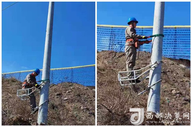 西部決策網(wǎng)訊 裝好防墜裝置,系好安全帶,苗壯踩著腳扣慢慢向電桿上方爬去。緊固接線端子、清理桿頂異物。沒多久,他后背的衣服就被汗水浸透了,隨著氣溫不斷上升,苗壯在與地面同事溝通時,嗓音也逐漸沙啞起來。這樣的場景,對他來說已是家常便飯。