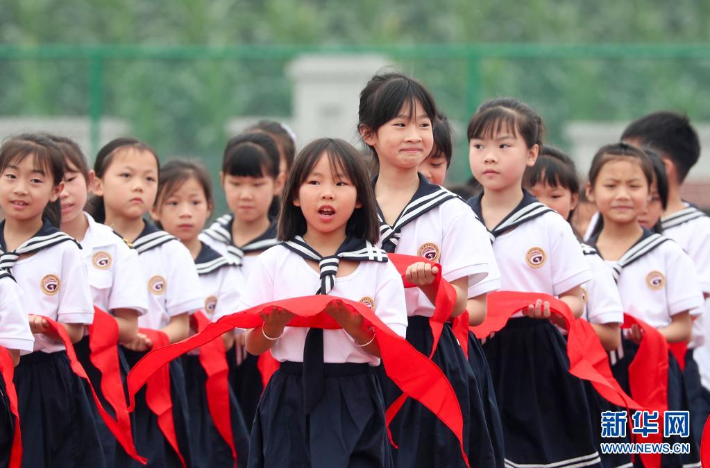 5月31日,少先隊(duì)員們在入隊(duì)儀式上宣誓。新華社記者 劉續(xù) 攝
