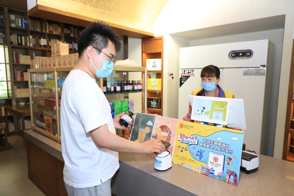圖為圓明園景區(qū)內,一名顧客正使用數(shù)字人民幣購買商品。受訪者供圖
